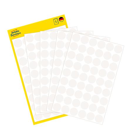 Etikety, okrúhle, priemer: 12 mm, AVERY ZWECKFORM, biele, 270 etikiet/bal