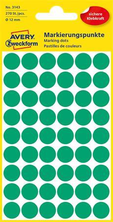 Etikety, okrúhle, priemer: 12 mm, AVERY ZWECKFORM, zelené, 270 etikiet/bal