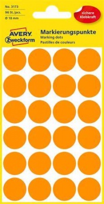 Etikety, okrúhle, priemer: 18 mm, AVERY ZWECKFORM, neónovo oranžové, 96 etikiet/bal