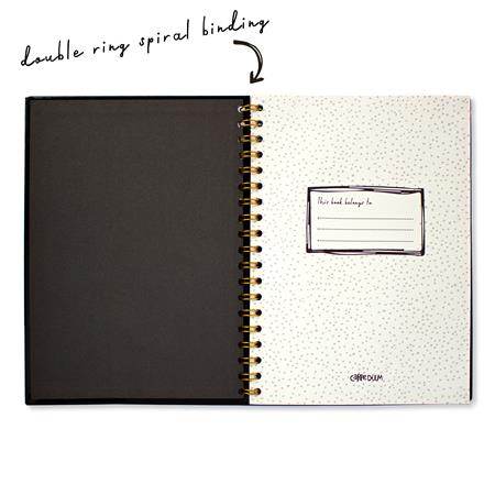 - vysokokvalitný zošit s tvrdou väzbou -dvojitá špirála v zlatej farbe -papier s gramážou 80 g/m² -160 strán -rozmery: 250x187 mm