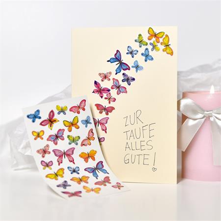 Kúzelné motýle v nádherných farbách! Nálepky s motýľmi sú perfektné na dekorovanie a kreatívne tvorenie. Ozdob listy, darčeky, priateľské zošity a zbierky básní týmito úžasnými motýľovými nálepkami. Naše dizajnové a kreatívne samolepiace nálepky sú vyrobené z tlačeného papiera. Nálepky Z-Design sú prirodzene špičkovej kvality, ktorú pravidelne kontrolujú a potvrdzujú nezávislé inštitúcie. Prajeme veľa zábavy pri zdobení! Upozornenie: Nevhodné pre deti do 3 rokov, malé časti môžu byť prehltnuté. -rozmery: 76x120 mm