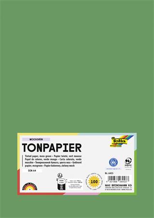 Farebný papier, A4, 130 g, 100 listov, FOLIA, machovo zelený