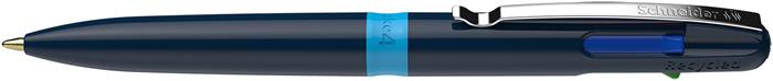 Guľôčkové pero, 0,5 mm, stláčací mechanizmus, 4-farebné, SCHNEIDER "Take 4", tmavomodrá