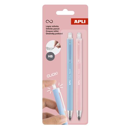 Nekonečná ceruzka, HB, mechanická, APLI "Infinite Click", modrá a ružová