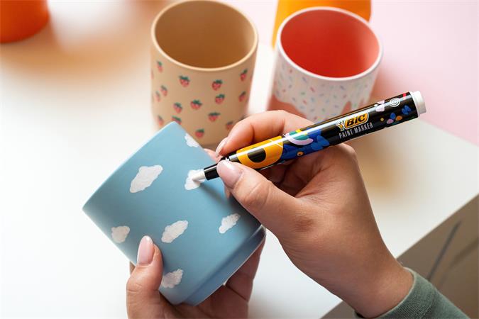 Inovatívny atramentový systém ponúka skvelé riešenie pre Vaše umelecké a kreatívne projekty. -disponuje systémom „netras, nečerpaj“ -12 ks bielych popisovačov -vodou riediteľná akrylová farba poskytuje dobré krytie na priehľadných aj iných povrchoch -produkt obsahuje 98 % recyklovaného materiálu (okrem atramentu) -krúbka písma: 1,5 – 2,3 mm veľkosť hrotu: 4,5 mm -možné použiť na väčšinu povrchov: kameň, keramika, sklo, drevo, textil, kartón, plast a kov