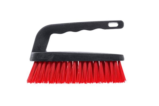 Plastová drôtená kefa s rukoväťou a plastovými štetinami, nevyhnutná pomôcka na upratovanie na odstraňovanie škvŕn a nečistôt. -pohodlná plastová rukoväť -navrhnutá na intenzívne drhnutie -robustné čistenie -rozmery: 10 x 6 cm -farba: červená -materiál: plast
